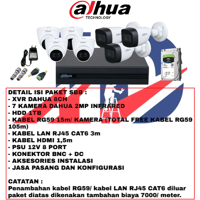 PAKET 7 KAMERA DAHUA 2MP INFRARED