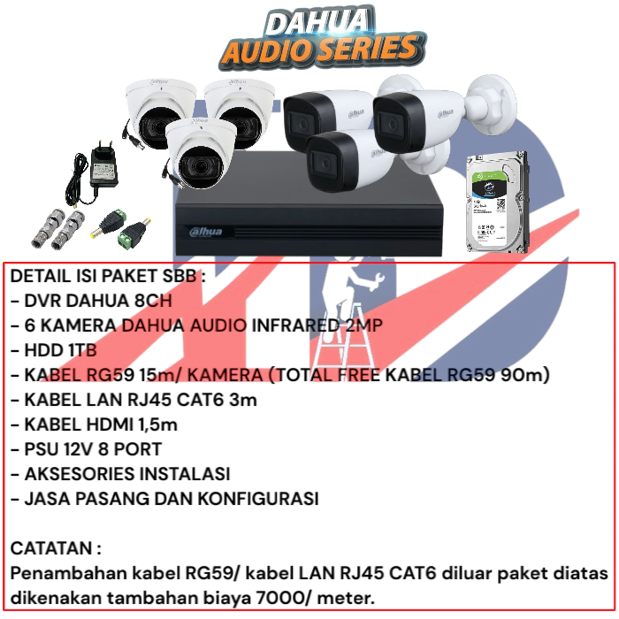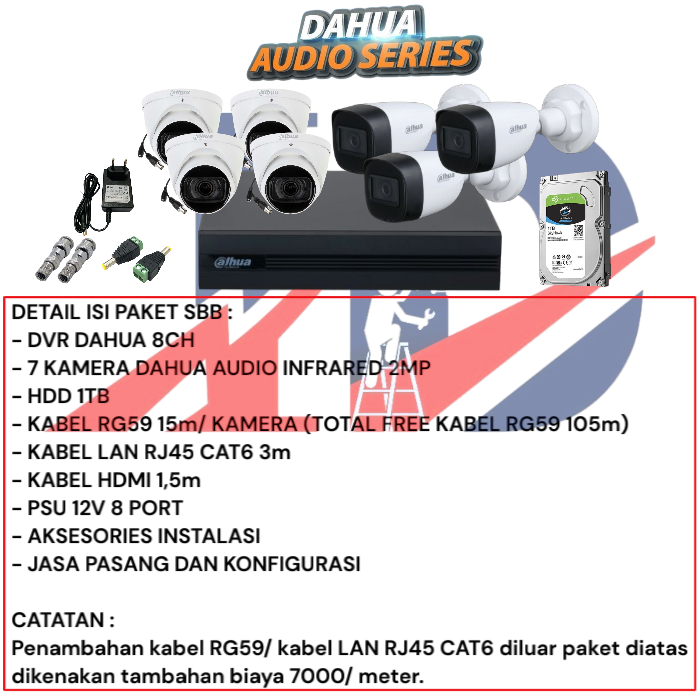 PAKET 7 KAMERA CCTV DAHUA AUDIO INFRARED 2MP