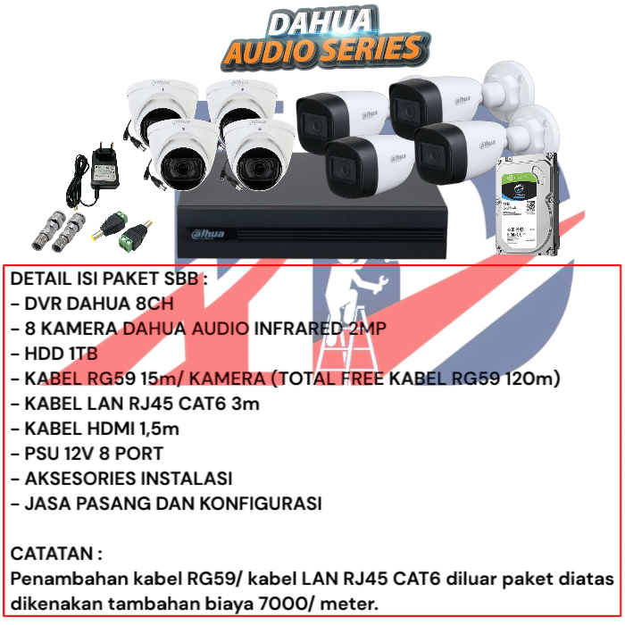 PAKET 8 KAMERA CCTV DAHUA AUDIO INFRARED 2MP